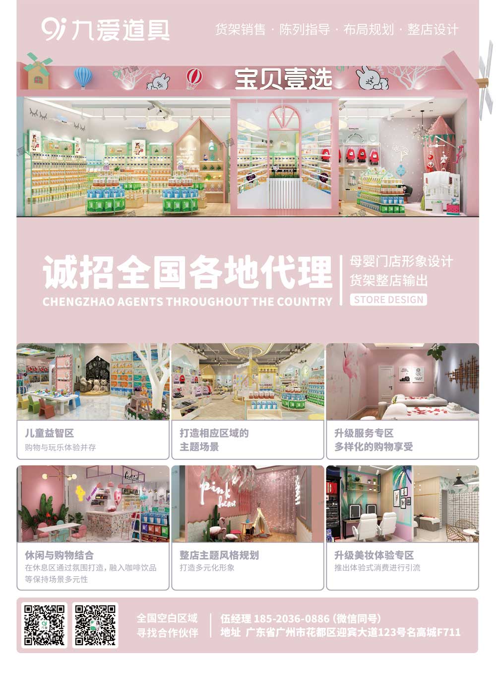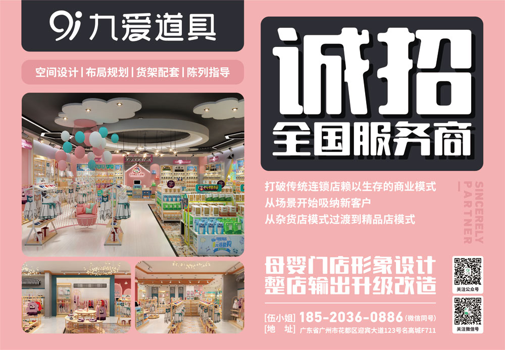 九愛自成立以來,著重為客戶打造差異化的品牌優(yōu)勢,眾多母嬰?yún)^(qū)域連鎖店、全國加盟店、精品單店等,通過賣場整體形象設(shè)計、賣場規(guī)范陳列展示,整店道具輸出等一站式服務(wù),全面提升了門店的競爭力。