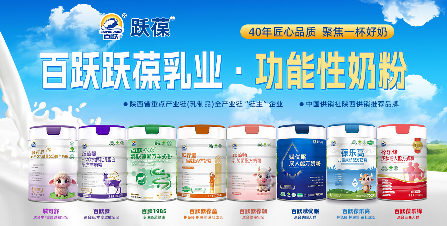 公司重點推出百躍躍葆乳業(yè)功能性奶粉系列,如敏可舒、躍葆嬰、百躍1985、躍葆暢、躍葆童、葆樂高、賦優(yōu)眠、葆樂絳等,適宜人群覆蓋0~100歲全年齡段,產(chǎn)品涵蓋過敏、腸道、長高、睡眠、三高等方向。
