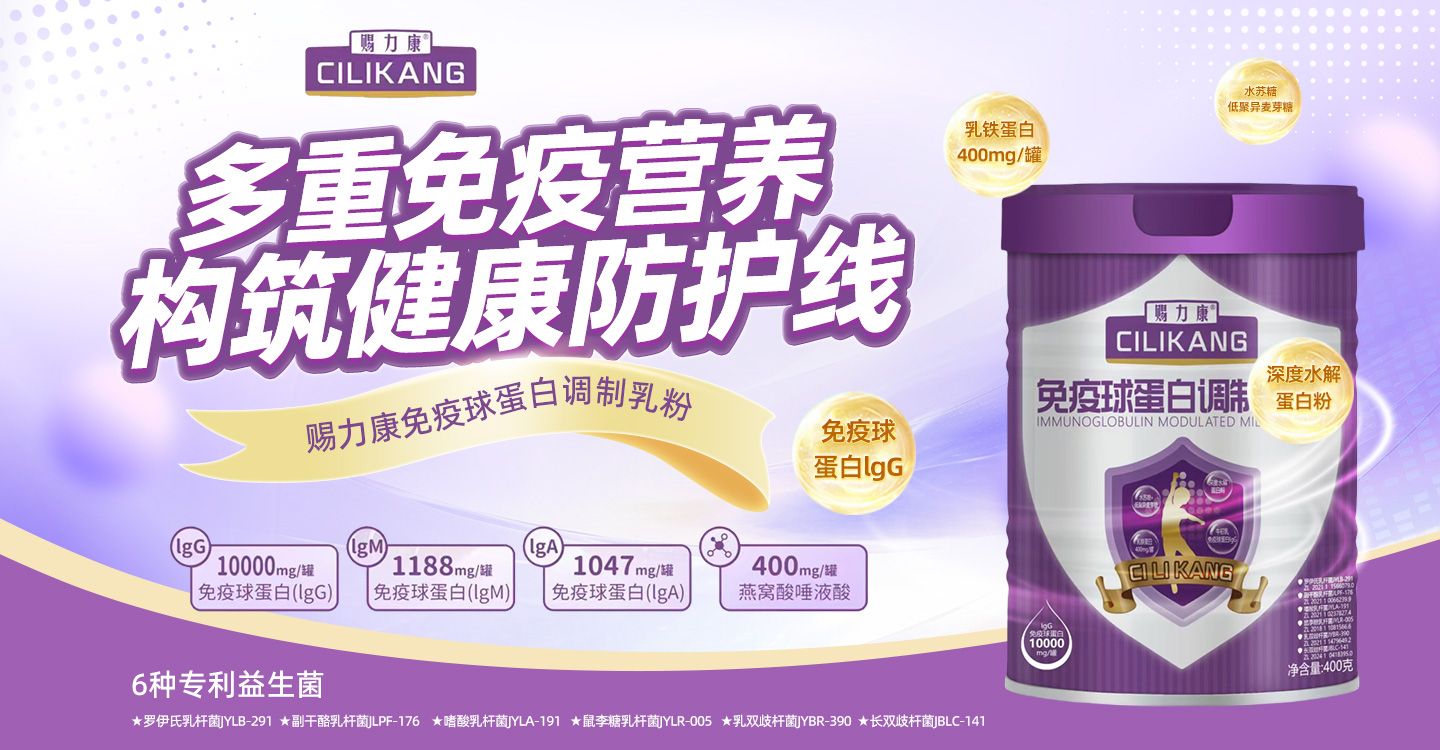 賜添力免疫球蛋白調(diào)制乳粉,多種核心營養(yǎng),科學(xué)配比,每罐添加乳鐵蛋白400mg、免疫球蛋白IgG 9500mg、免疫球蛋白IgA 1000mg、免疫球蛋白IgM 1120mg、燕窩酸400mg,還添加6種專利益生菌、乳鐵蛋白、深度水解蛋白粉等,多重免疫營養(yǎng)標(biāo)本兼顧,為全家人構(gòu)筑健康第一道防護(hù)線。