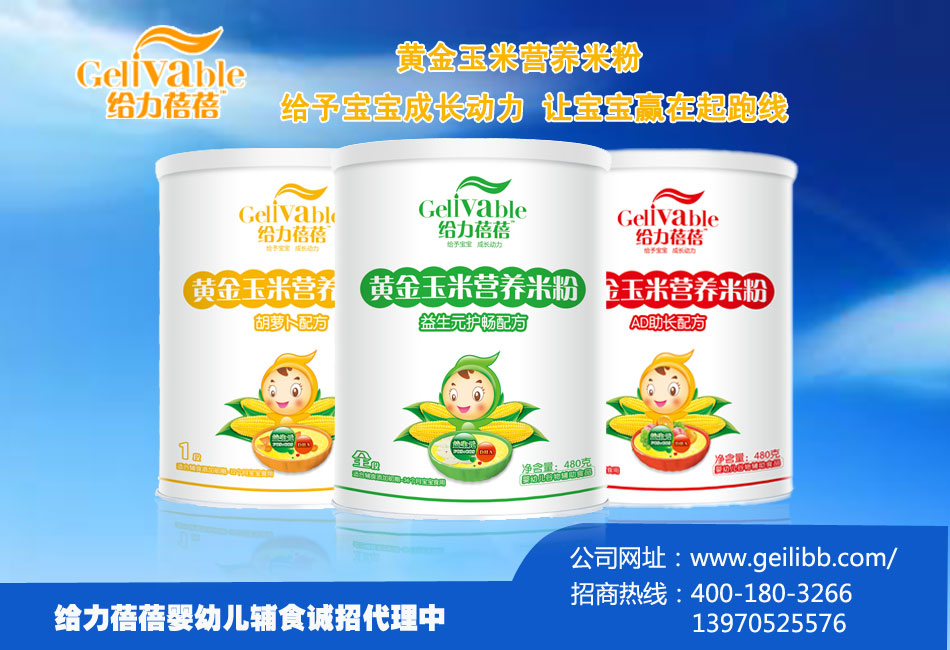 品牌名稱:給力蓓蓓 主營產(chǎn)品:給力蓓蓓嬰幼兒輔食招商 品牌特色:天然純正 營養(yǎng)豐富 口感良好