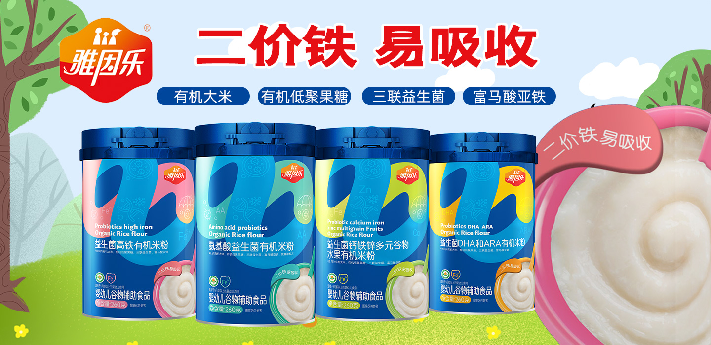 雅因樂,江西廣來健康產(chǎn)業(yè)有限公司旗下品牌,該公司于2007年成立于中國藥都樟樹,由江西德上科技集團(tuán)控股,是一家具有自主研發(fā)能力,集科、工、貿(mào)于一體的現(xiàn)代化民營科技企業(yè),專注于研發(fā)、生產(chǎn)、銷售嬰幼兒輔助食品及營養(yǎng)食品,廠房均達(dá)到“10萬級”的凈化指標(biāo)。生產(chǎn)過程實(shí)行了技術(shù)化、標(biāo)準(zhǔn)化、系列化和信息化管理。經(jīng)過多年發(fā)展,公司旗下已經(jīng)有雅因樂、藝高金貝兩大主營品牌。廣來健康秉承“廣種健康,關(guān)愛未來,一切為了孩子”的理念,先后獲得“有機(jī)米粉認(rèn)證”、“中國米粉十大品牌”、“中國嬰幼兒有機(jī)米粉領(lǐng)導(dǎo)品牌”、“中國消費(fèi)者滿意名特優(yōu)品牌”等榮譽(yù),產(chǎn)品一上市就受到了廣大消費(fèi)者的喜愛和認(rèn)可。