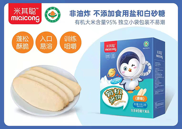 米其聰有機(jī)米餅,非油炸,不添加食用鹽和白砂糖,有機(jī)大米含量95%,獨(dú)立小袋包裝不易潮。蓬松酥脆,入口易溶,訓(xùn)練咀嚼。