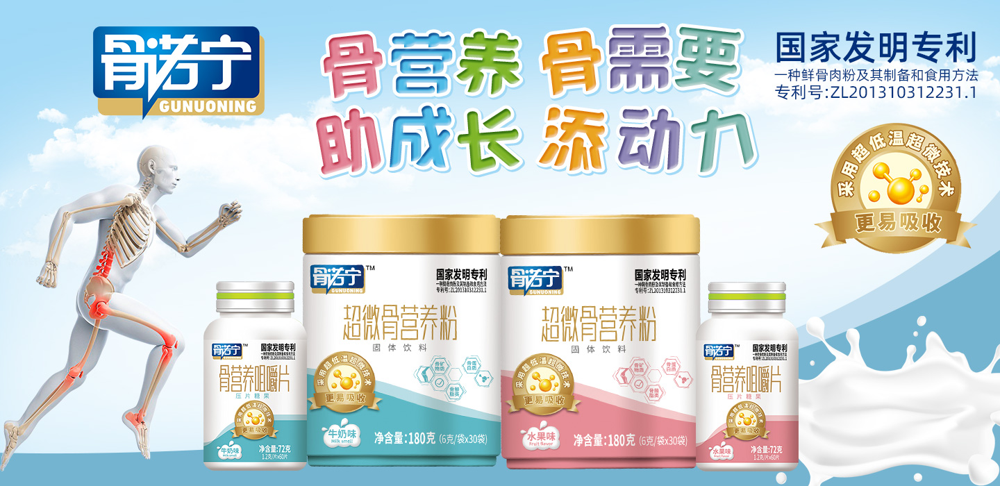品牌名稱:骨諾寧 主營產(chǎn)品:骨諾寧超微骨營養(yǎng)粉,咀嚼片 品牌特色:精選原料 配方科學