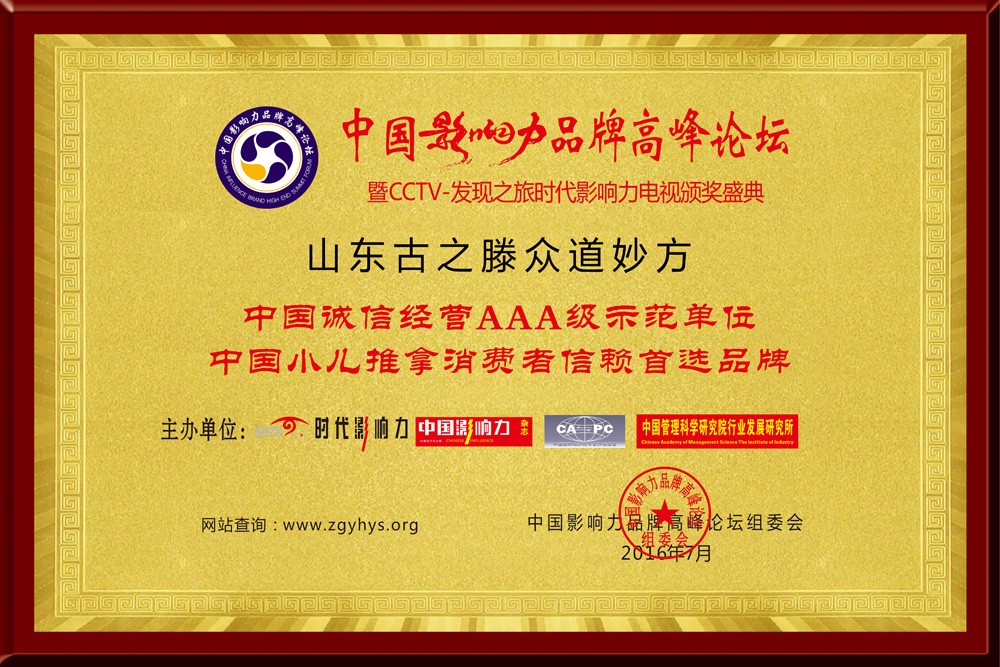 ◆2017年榮獲“中國(guó)誠(chéng)信經(jīng)營(yíng)AAA級(jí)示范單位” “中國(guó)小兒推拿消費(fèi)者信賴首選品牌
