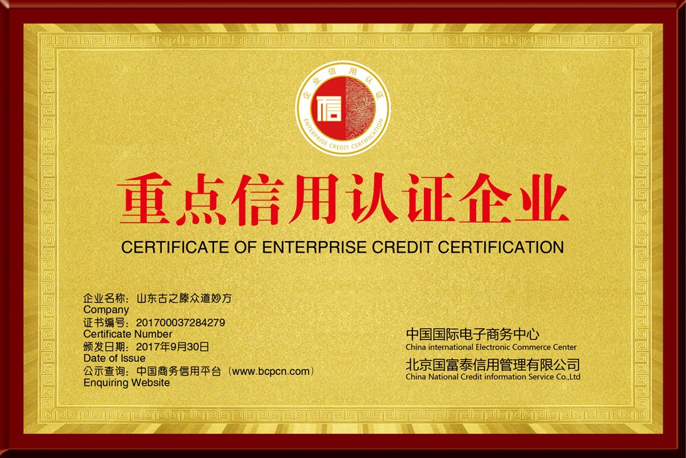◆2017年9月30日被中國(guó)國(guó)際電子商務(wù)中心 、北京國(guó)富泰信用管理有限公司授予重點(diǎn)信用認(rèn)證企業(yè),并頒發(fā)證書銅牌和證書!