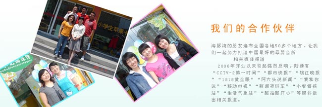 06年杭州第一家兒童專業(yè)理發(fā)服務機構開張營業(yè),經過4年的發(fā)展成為杭州嬰幼兒服務最大最專業(yè)連鎖機構之一,迄今為止已經在全國各地擁有50多家合作店,第一家引進來自太空的水處理系統(tǒng)--美國中央軟水處理系統(tǒng),第一家引進開發(fā)了適合1到6歲寶寶的幼兒游泳項目,第一家擁有正規(guī)游泳師證書的嬰兒游泳館,第一家擁有嬰兒沖浪游泳的游泳館,第一家使用恒溫設備的游泳館。經過幾年的發(fā)展,讓我們更懂得珍惜和感恩,愛孩子像愛自己的寶貝!