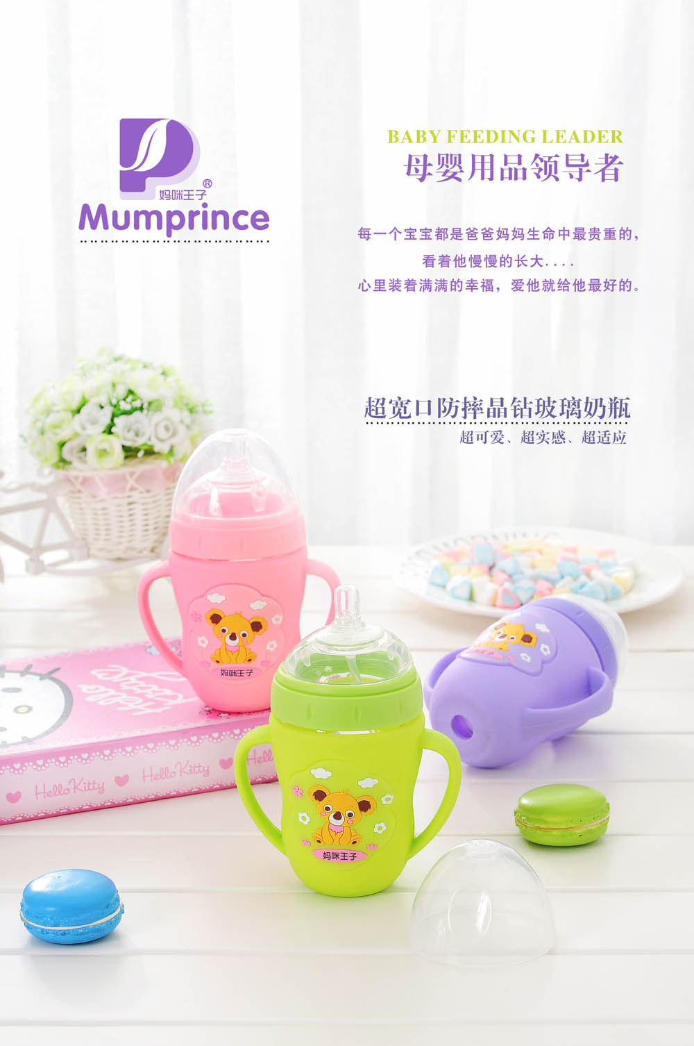 目前公司主要銷售產(chǎn)品包括:PPSU奶瓶系列、雙層保護(hù)玻璃奶瓶系列、嬰兒硅膠奶瓶系列、防脹氣奶瓶系列、高硼硅玻璃奶瓶系列、PP環(huán)保奶瓶系列、液體硅膠奶嘴系列、水杯水壺系列、奶瓶刷、吸奶器、安撫奶嘴及其它母嬰輔助用品。產(chǎn)品線全面覆蓋哺育喂養(yǎng)系列、輔食成長系列、媽媽系列等,我司秉承“專業(yè)、健康、科學(xué)”的品牌理念,為寶寶們量身設(shè)計,提出具有針對性的科學(xué)哺育方案,滿足孕期到喂養(yǎng)的各階段需求,為新手媽咪和寶寶們帶來獨特的產(chǎn)品體驗和人性關(guān)懷。媽咪王子用心呵護(hù)寶寶的健康成長。