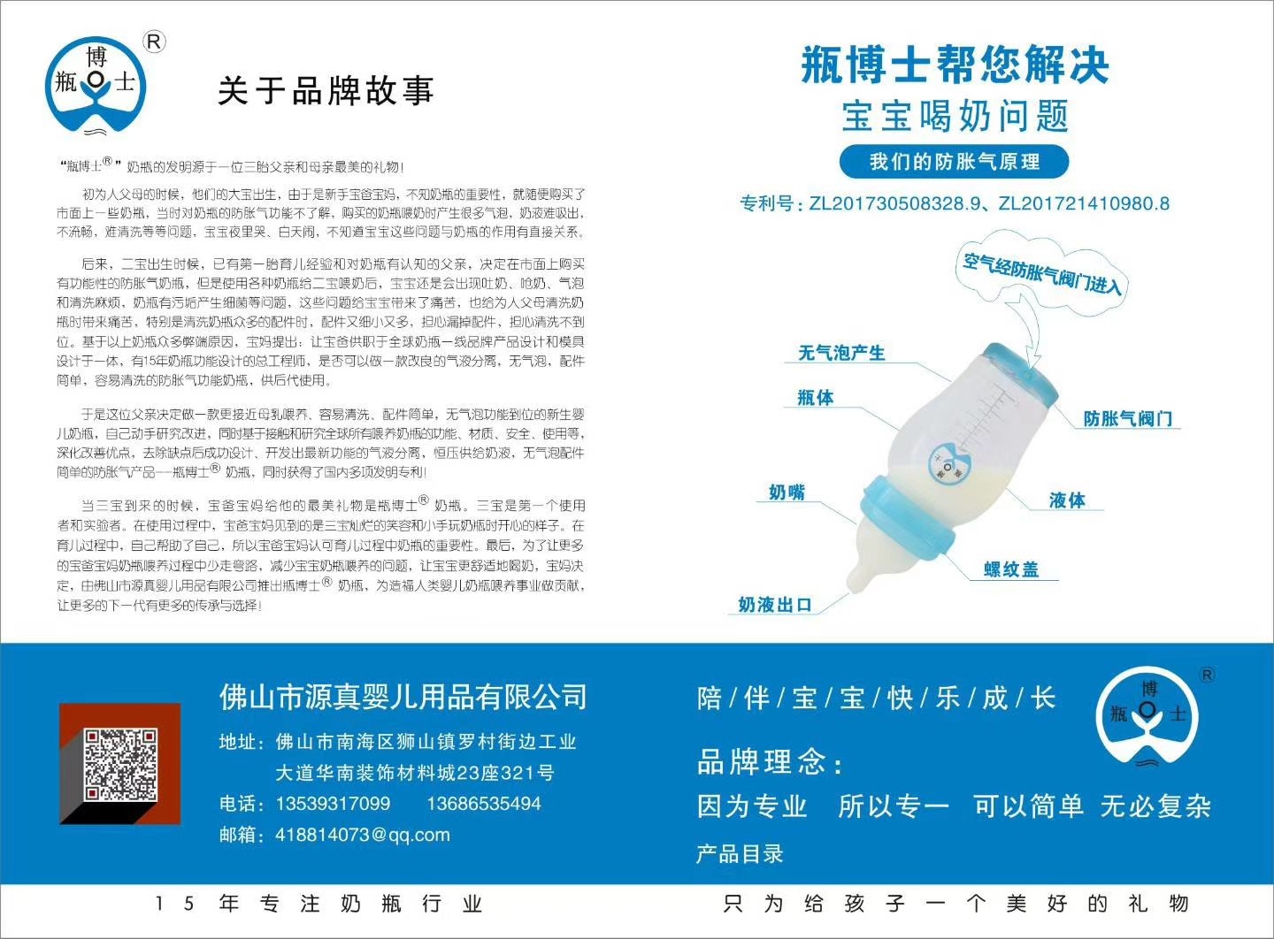 佛山市源真嬰兒用品有限公司,是一家集研發(fā)、生產(chǎn)、銷售為一體的現(xiàn)代化企業(yè),旗下品牌“瓶博士”,專注奶瓶、奶嘴等母嬰產(chǎn)品的研發(fā)及生產(chǎn),堅(jiān)持以品質(zhì)樹立口碑,持續(xù)開發(fā)和創(chuàng)新,為億萬家庭的寶寶提供時(shí)尚、健康、安全、舒適的生活用品。