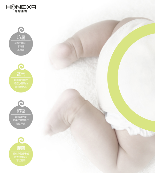 哈尼希奇紙尿褲采用超薄設(shè)計,拒絕悶熱、潮濕,特含超透氣因子,給寶寶小屁屁帶來全新干爽舒適,讓寶寶擁有貼心之褲。