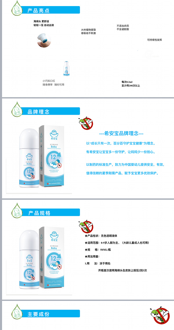 希安寶,以“成長只有一次,百分百守護(hù)寶寶健康”為理念。有希安寶讓寶寶多一份守護(hù),讓媽媽少一份擔(dān)心。以制藥的標(biāo)準(zhǔn)生產(chǎn),致力為中國yingye提供安全,有效,值得信賴的夏季剛需產(chǎn)品,賦予寶寶更多優(yōu)效保護(hù)。