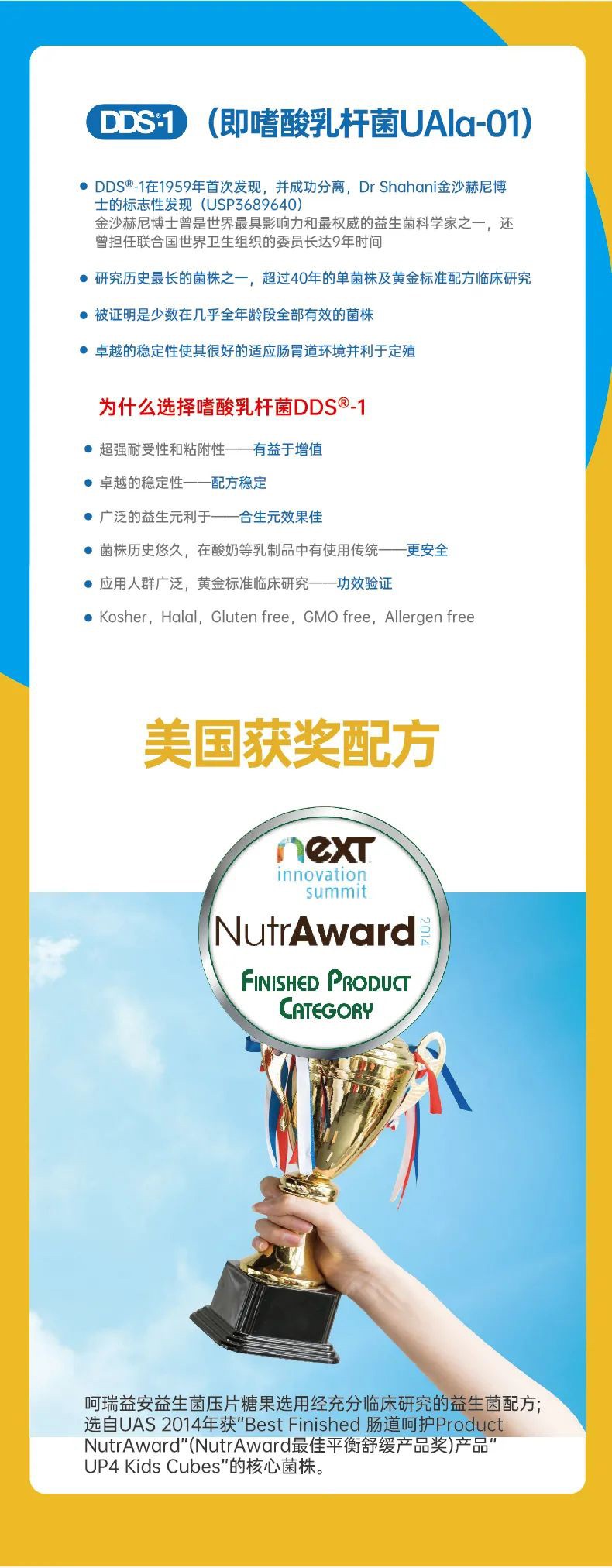 呵瑞益安益生菌壓片糖果,選用進(jìn)口菌株,菌株原料符合美國(guó)FDA GRAS要求,每片添加活菌數(shù)50億CFU,添加嗜酸乳桿菌UAla-01、乳雙歧桿菌UABla-01,高活菌量,香甜口感。四大自主工藝:低溫干燥風(fēng)冷壓片技術(shù),劑嵌式干燥斜插包裝技術(shù),自主造粒技術(shù),自主充氮包裝工藝;原料安全,認(rèn)證齊全,方便食用,無需冷藏。