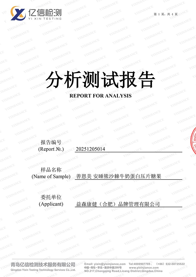 您所在位置:首頁(yè)>益森康。ê戏剩┢放乒芾碛邢薰>善恩美安睡熊沙棘牛奶蛋白(壓片糖果)