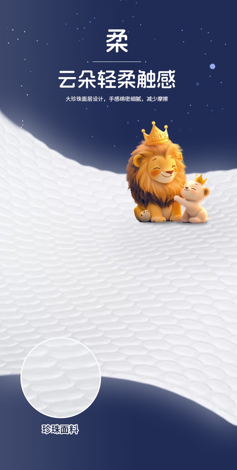 云朵輕柔觸感:大珍珠面層設(shè)計(jì),手感綿密細(xì)膩,如云朵般輕柔,減少摩擦。
