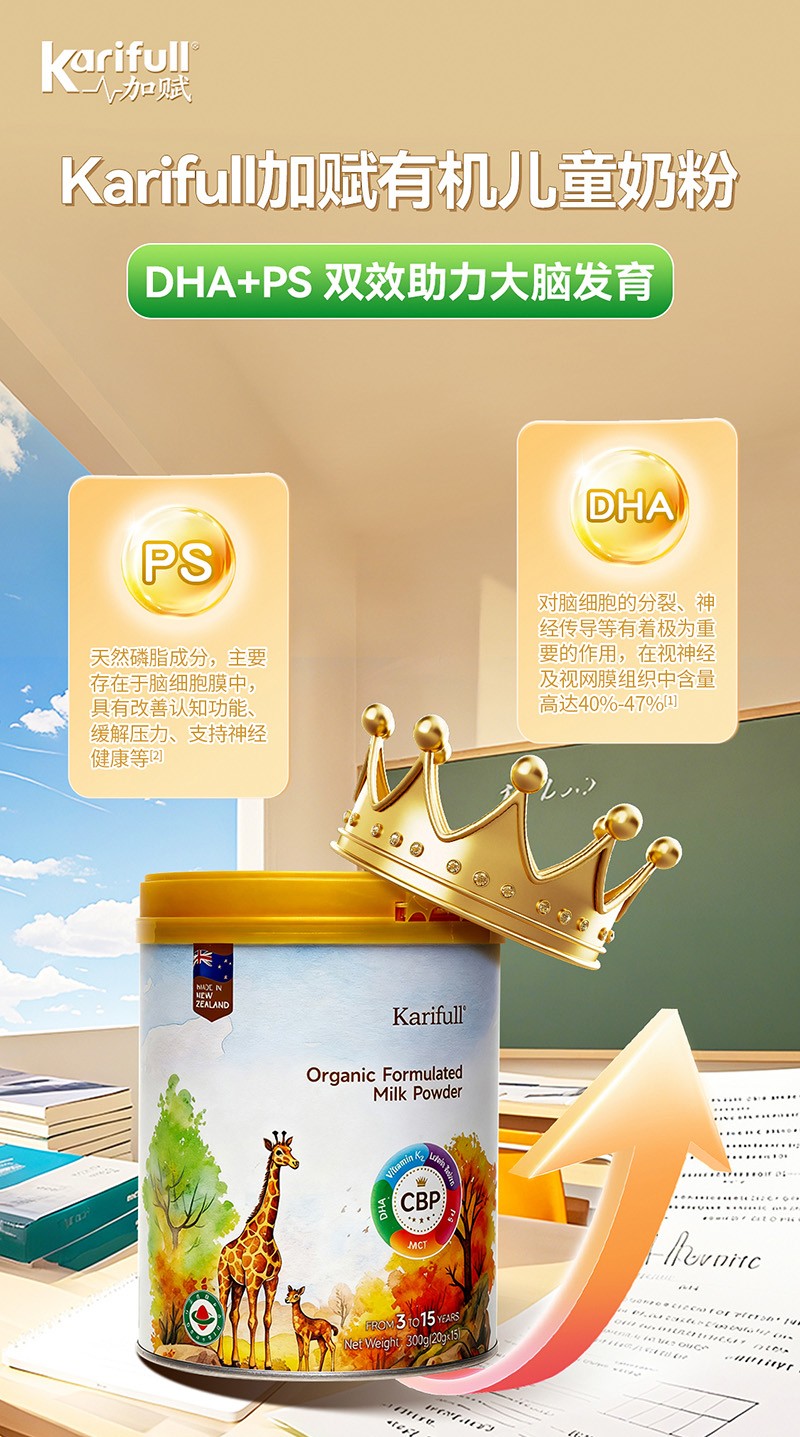 加賦有機(jī)一款通過有機(jī)認(rèn)證的兒童MCT配方奶粉,更是“兒童成長精準(zhǔn)營養(yǎng)方案”,3-15歲是兒童成長的黃金期,5維成長體系解鎖骨骼·健腦·護(hù)眼·免疫·吸收。