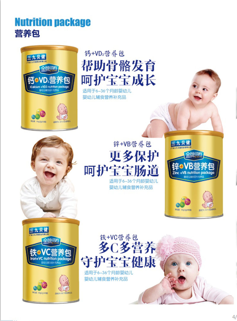 廣東三九貝健藥業(yè)有限公司(以下簡稱:三九貝。┦菑V東工商,藥監(jiān),衛(wèi)生等多家部門批準(zhǔn)的一家以科研開發(fā),生產(chǎn),銷售,服務(wù)為一體的現(xiàn)代化,多元化新型醫(yī)藥企業(yè)。專業(yè)致力于保健食品,母嬰幼童營養(yǎng)食品,母嬰幼童營養(yǎng)保健品,醫(yī)療器械,藥妝日化,消毒產(chǎn)品,生物制品等產(chǎn)品。公司長期與生物技術(shù)領(lǐng)域標(biāo)準(zhǔn)化的專業(yè)研究機構(gòu)以及國內(nèi)外知名的優(yōu)秀生產(chǎn)企業(yè)密切合作采用了先進(jìn)專業(yè)的生物技術(shù),嚴(yán)格選用優(yōu)質(zhì)原料,采用國際先進(jìn)工藝,在符合藥品GMP和保健品GMP雙重標(biāo)準(zhǔn)的工廠生產(chǎn),所有產(chǎn)品經(jīng)過嚴(yán)格的質(zhì)量監(jiān)控體系,確保為社會大眾提供“安全、優(yōu)質(zhì)、高效、環(huán)!钡漠a(chǎn)品和服務(wù)。 公司秉承“誠實守信”的社會責(zé)任觀,堅持以“關(guān)愛大眾健康”為使命,以“品質(zhì)第一,誠實守信,健康為民,平等互惠”為經(jīng)營理念。