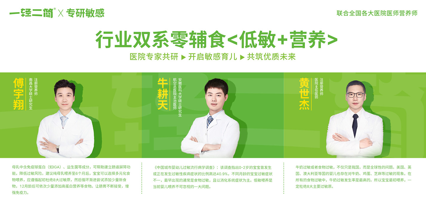 一輕二簡,雙細分品牌零輔食,敏感專研品牌!低敏+營養(yǎng),制定5A食養(yǎng)和5A防敏守則,即解決了敏寶喂養(yǎng)方案,又解決了敏寶營養(yǎng)攝入不足的痛點。成為行業(yè)標(biāo)桿,美好千萬家庭,走向國際舞臺!