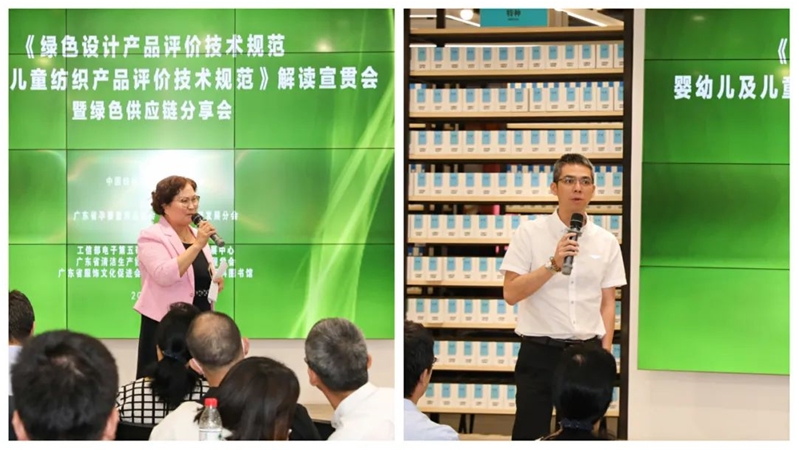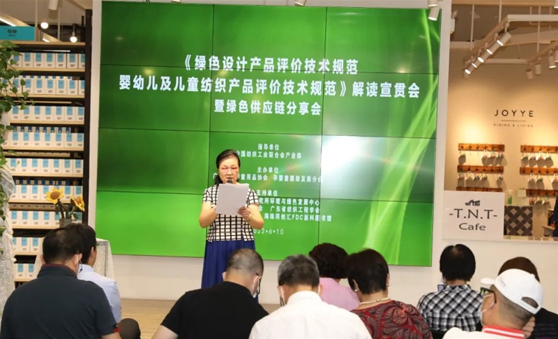 會上邀請了工業(yè)和信息化部電子第五研究所姜濤主任作了《綠色設(shè)計產(chǎn)品及其評價技術(shù)規(guī)范編制意義》主題發(fā)言,闡述了制定嬰幼兒童裝綠標的背景、意義,綠色設(shè)計對產(chǎn)品全生命周期的影響,通過對產(chǎn)品標準評價可以將市場產(chǎn)品優(yōu)劣識別出來,企業(yè)通過評價發(fā)現(xiàn)不足改進提高,接下來要開展綠色童裝產(chǎn)品評定認證的工作。
