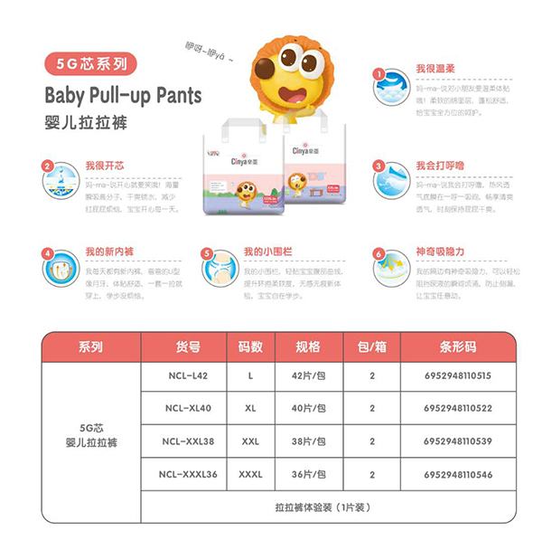 福建省南安市泉發(fā)紙品有限公司以市場需求為導向,不斷開發(fā)新產品,辛亞5G芯嬰兒拉拉褲是深受市場追捧的產品,巨大的價格優(yōu)勢,讓您無論采取何種營銷策略,均游刃有余!代理商如能根據(jù)實際情況靈活經營,綜合運用各種營銷手段,短時間即可一炮打響,在當?shù)叵破鹨还裳该偷目癯,以最快的速度獲得收益,創(chuàng)造新的財富傳奇!