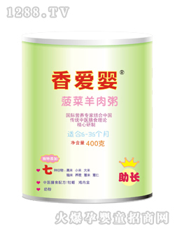 香愛嬰bao--bao紅棗排骨營養(yǎng)粥是法國香愛嬰嬰童用品國際有限公司旗下產(chǎn)品,以營養(yǎng)米片、紅棗粉、排骨粉、二十二碳六烯酸(DHA)為原料,經(jīng)營養(yǎng)學(xué)家科學(xué)調(diào)配而成,營養(yǎng)豐富,食用方便,上市以來廣受稱贊,深受媽媽們的青睞。