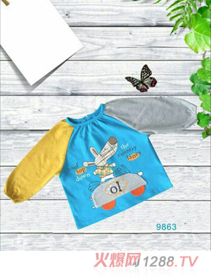 黑色的半身長裙,搭配著抽象額白色印花,富有童話色彩,而在袖子上做的比較短,一個(gè)是能夠把孩子的活潑個(gè)性表達(dá)出來。另一個(gè)是,對(duì)于這樣的設(shè)計(jì)來說,更方便孩子的活動(dòng),而不會(huì)因?yàn)樾渥拥木o皺而讓衣袖腋下處撕破。班吉鹿的服飾在很多版型上都有著短衣袖的特點(diǎn)。