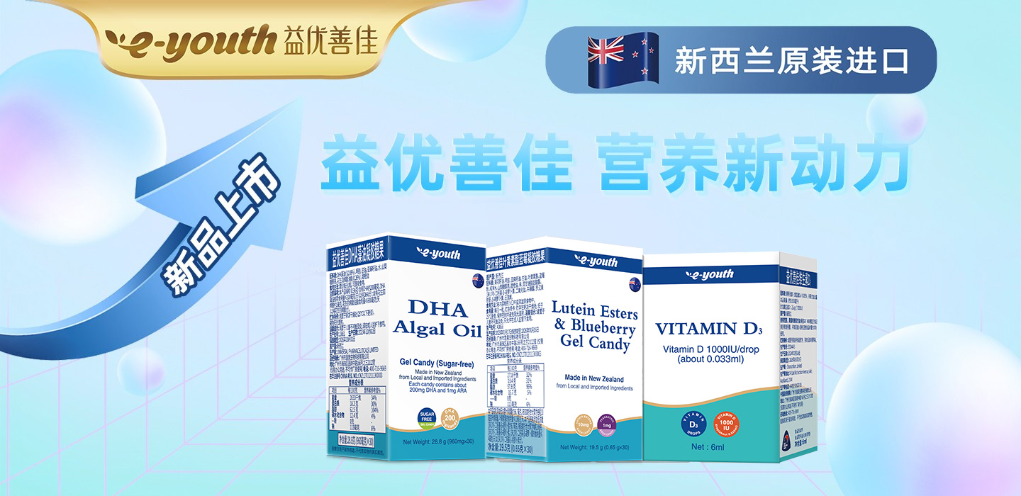 益優(yōu)善佳營(yíng)養(yǎng)品,有復(fù)配乳化劑、DHA藻油凝膠糖果、葉黃素酯藍(lán)莓凝膠糖果等,新西蘭原瓶原裝進(jìn)口,歐盟各國(guó)同步銷售,多重認(rèn)證,品質(zhì)保證,值得信賴。
