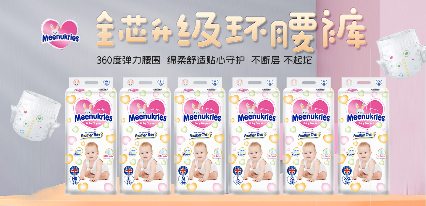 Meenukries英幫紙尿褲/一體褲,全芯升級(jí),輕柔舒適,呵護(hù)寶寶健康成長。芯體結(jié)構(gòu)多重保護(hù),瞬吸鎖水,均勻?qū)Я鳎卫捂i濕,不起坨,不斷層;綿柔舒適,親膚安全,貼心守護(hù);輕薄透氣,寶寶舒心,遠(yuǎn)離紅PP;彈力腰圍,松緊有度,親密貼合,隨心動(dòng),不側(cè)漏。