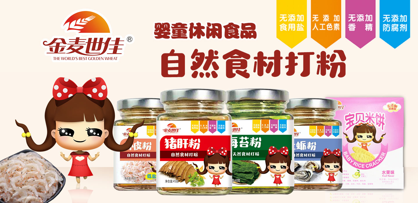 金麥?zhǔn)兰?/strong>:用金子一樣的心,尋找營養(yǎng)與口感的完美平衡,打造屬于寶寶的零食王國,讓金麥成為世代佳話。