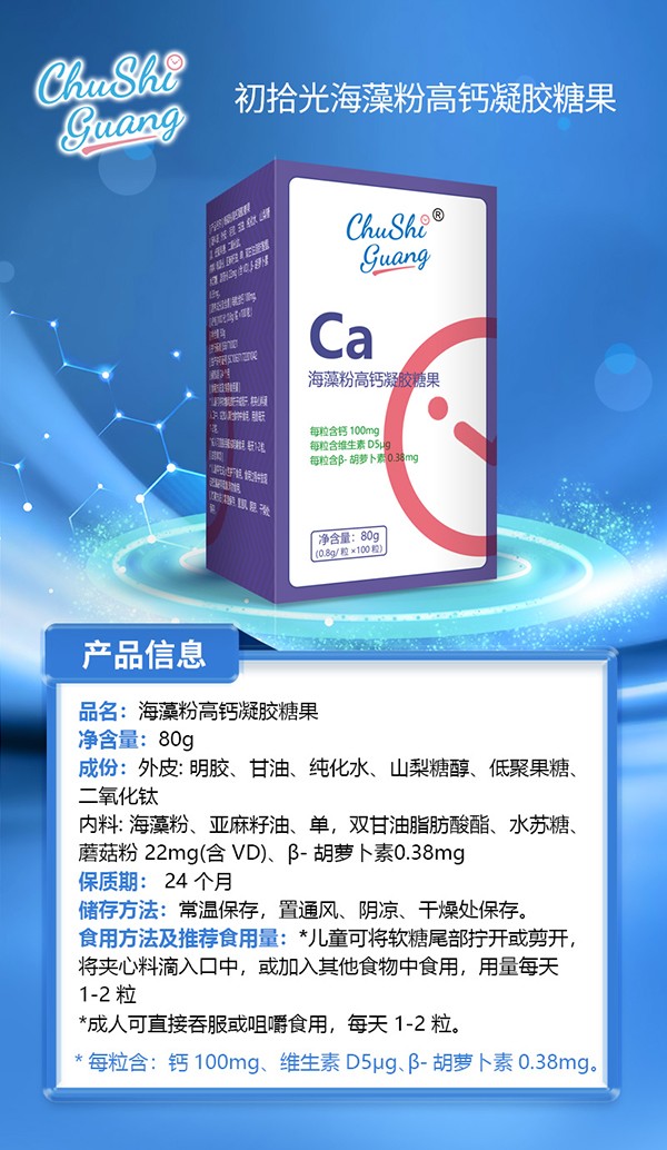 當(dāng)下,營養(yǎng)品深得市場青睞,北京初拾光品牌管理有限公司旗下的初拾光系列產(chǎn)品更是圈粉無數(shù)!就比如這款“初拾光海藻粉高鈣凝膠糖果”可謂上市即大賣,各大門店紛紛上貨,消費(fèi)者青睞有加!