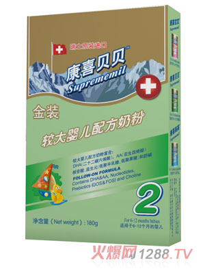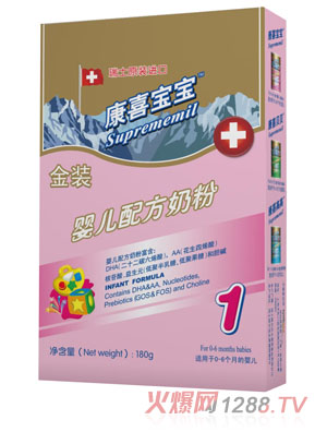 Suprememil系列配方奶粉(康喜bao--baoSuprememil 1、康喜貝貝Suprememil 2、康喜高高Suprememil 3),是由瑞士赫爾達(dá)夫營(yíng)養(yǎng)食品有限公司生產(chǎn),由欣特峽商貿(mào)(上海)有限公司總經(jīng)銷。欣特峽商貿(mào)(上海)有限公司在食品、保健品、藥品、醫(yī)療儀器等領(lǐng)域提供采購(gòu)、品牌營(yíng)銷、物流、經(jīng)銷等一體化服務(wù)。